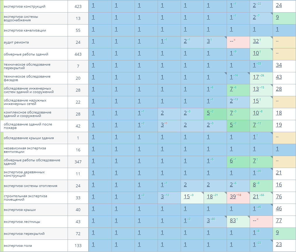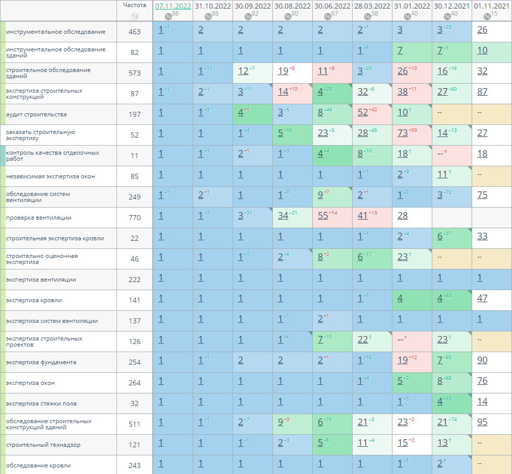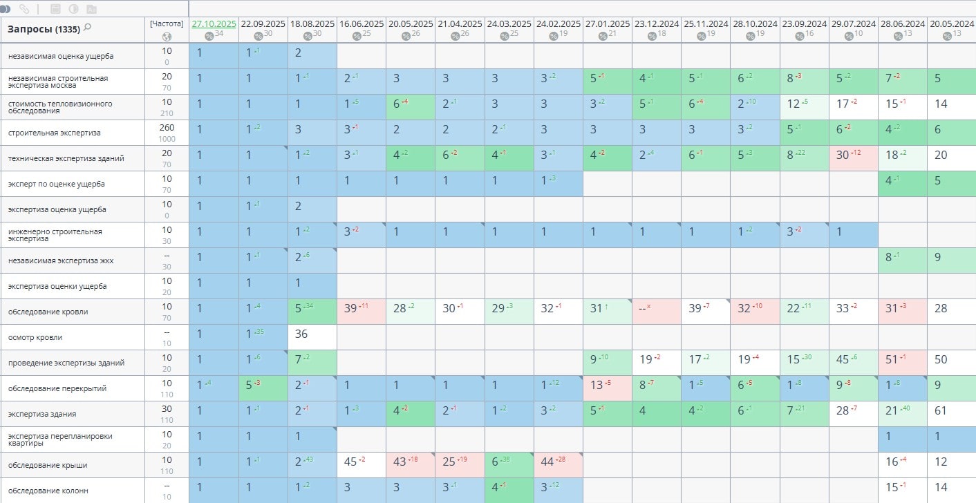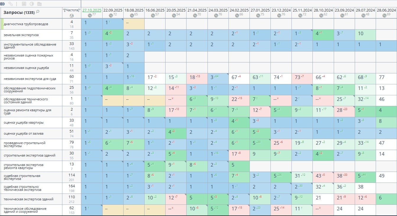 В мае 2025 года увеличили семантическое ядро для продвижения в два раза до 1335 запросов.