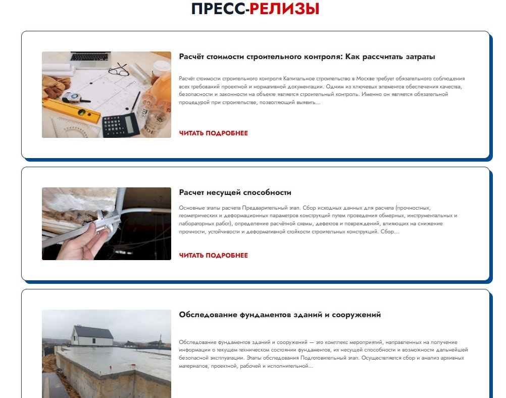 1. Реализовали страницы с выполненными работами, чтобы подчеркнуть экспертность и профессионализм компании: