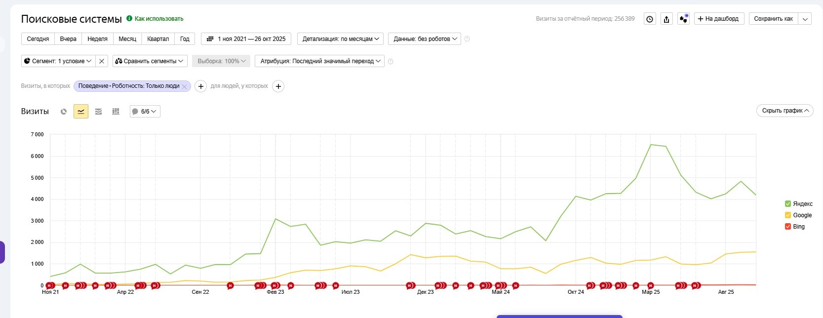 Рост трафика на сайт за всё время продвижения:
