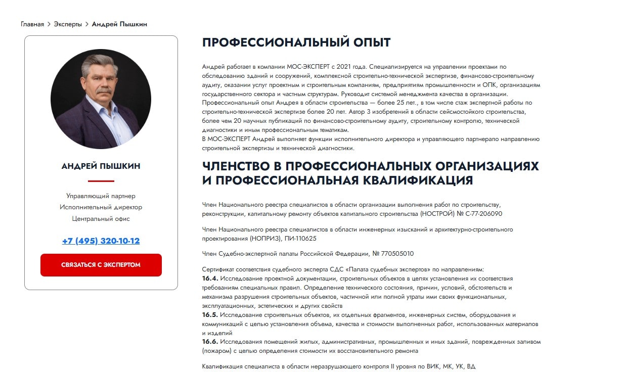 1. Создали страницы с экспертами и для каждого эксперта отдельно, где расписали опыт работы и образование специалистов.