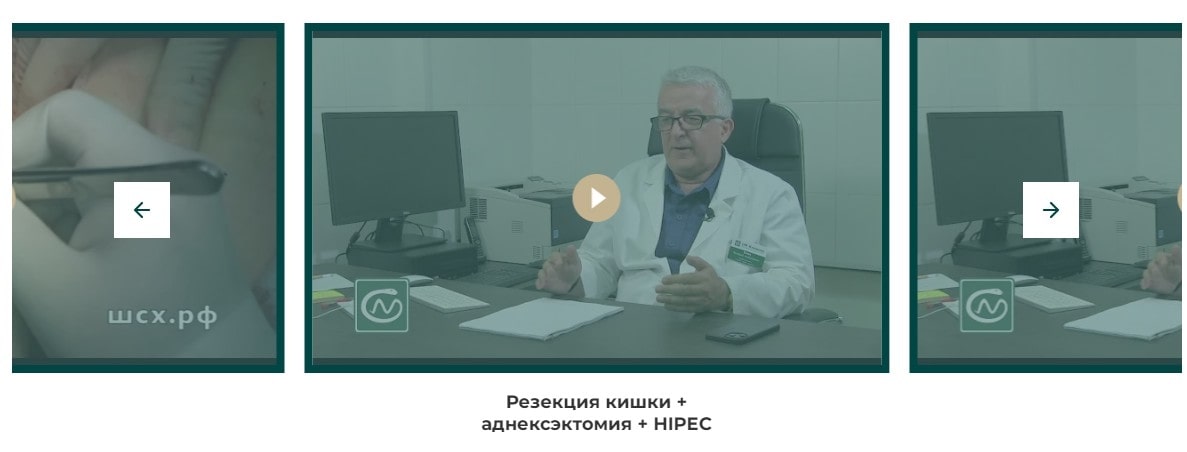 Сайт хирурга-онколога является одновременно и коммерческим, и информационным. Контент, размещаемый на страницах, должен быть в первую очередь экспертным, и только потом продающим. Для этого страницы с контентом разбиты на отдельные блоки: симптоматика и показания, виды лечения, видео с операциями. Отдельно вынесен прайс, ответы на вопросы. Отзывы оформлены как разбор конкретных клинических случаев из врачебной практики.