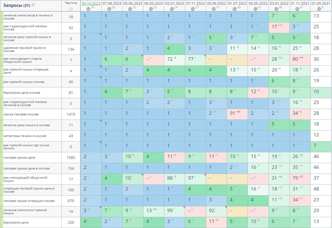 Сбор высокочастотных и среднечастотных коммерческих запросов по теме онкохирургии и бариатрии, заказ и размещение текстов, прописывание мета-тегов.