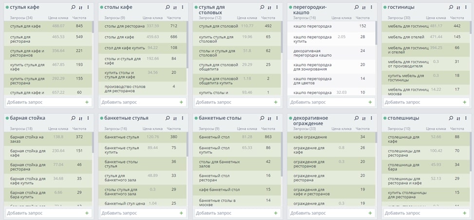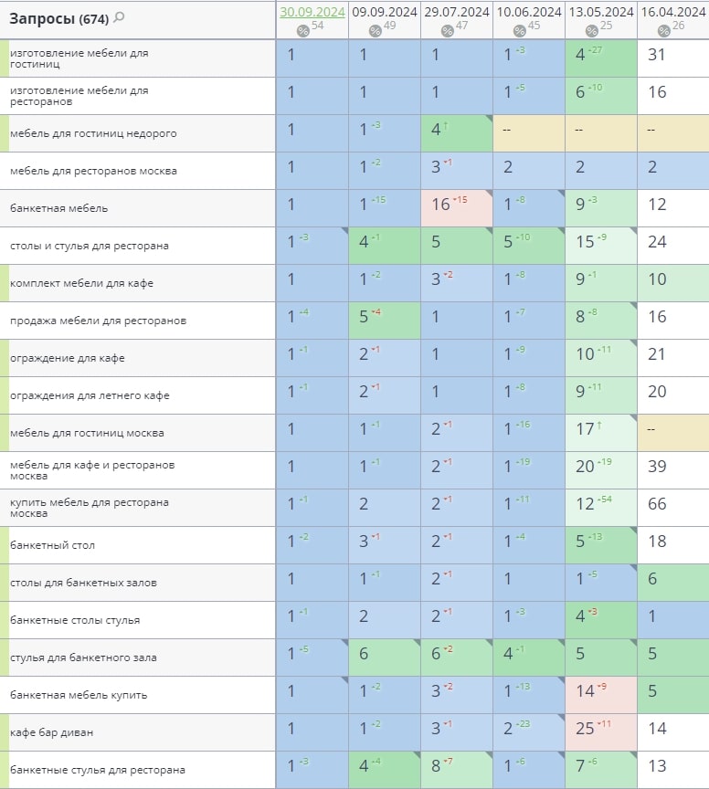 Сбор высокочастотных и среднечастотных запросов по теме изготовления и продажи мебели для кафе, ресторанов, ТЦ, офисов и т.д., оптимизация страниц сайта под запросы для их выведения в ТОП-10 выдачи поисковых систем.
