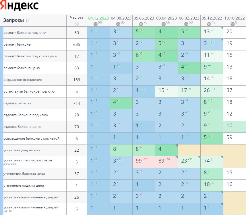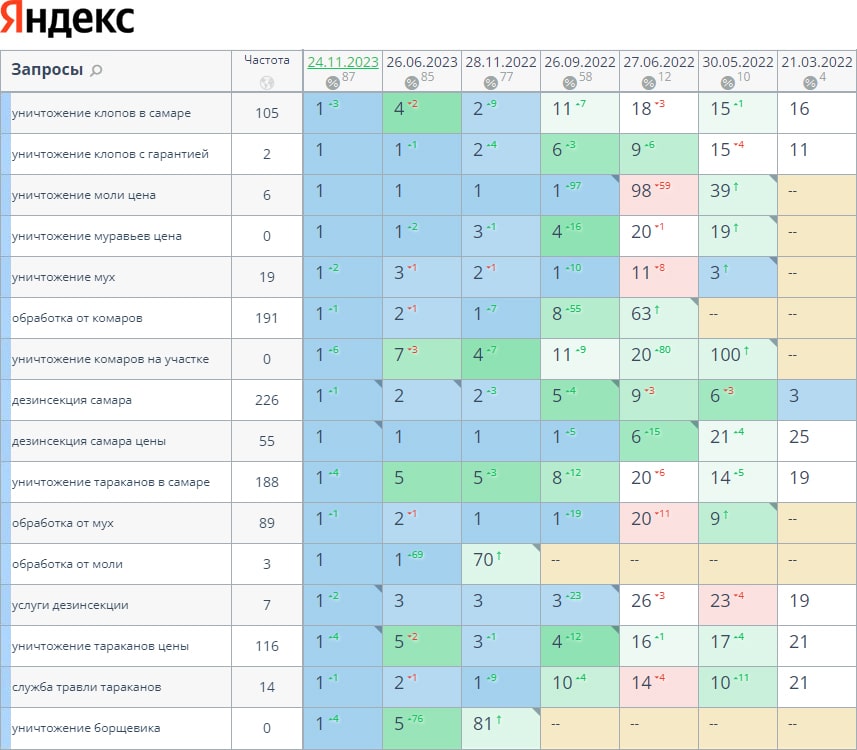 За время работы нам удалось поднять позиции в Яндекс с 18% до 71% в ТОП-10 и с 5% до 44% в ТОП-3.