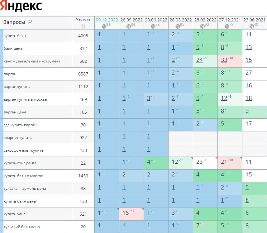 Клиент обратился с запросом: вывести позиции сайта в выдаче Яндекс в ТОП-10.